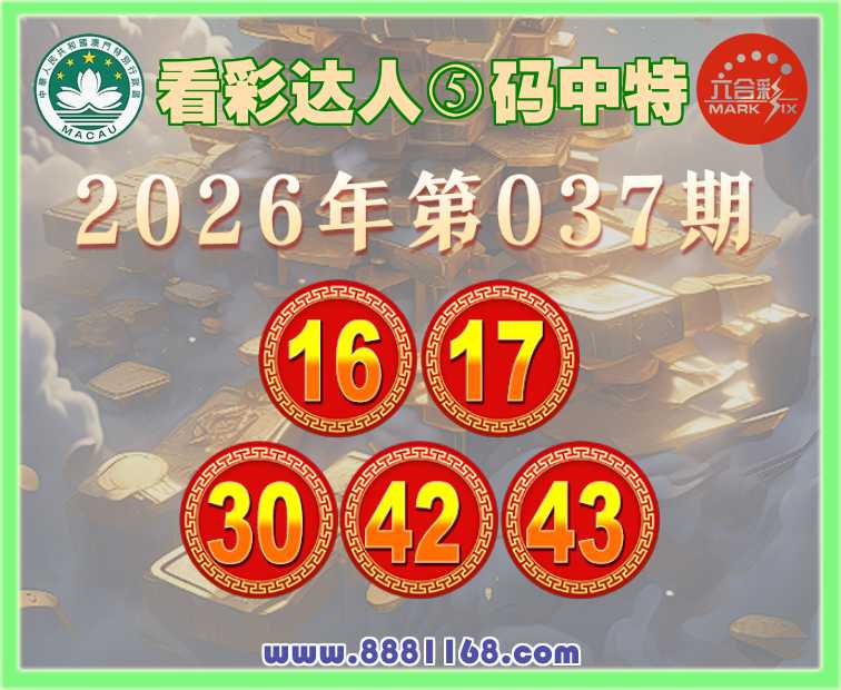 037期:〖看彩达人〗 🧩⑤码中特🧩【16.17.30.42.43】开:43准上榜高手