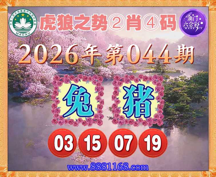 044期:【虎狼之势】 ☝️②肖④码☝️【兔】【03.15.07.19】开:猪19准上榜高手