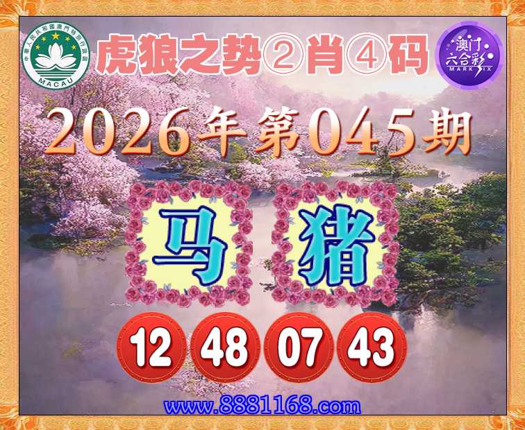045期:【虎狼之势】 ☝️②肖④码☝️【马猪】【12.48.07.43】开:蛇01