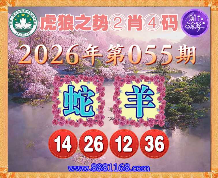 055期:【虎狼之势】 ☝️②肖④码☝️【羊】【14.26.12.36】开:蛇14准上榜高手